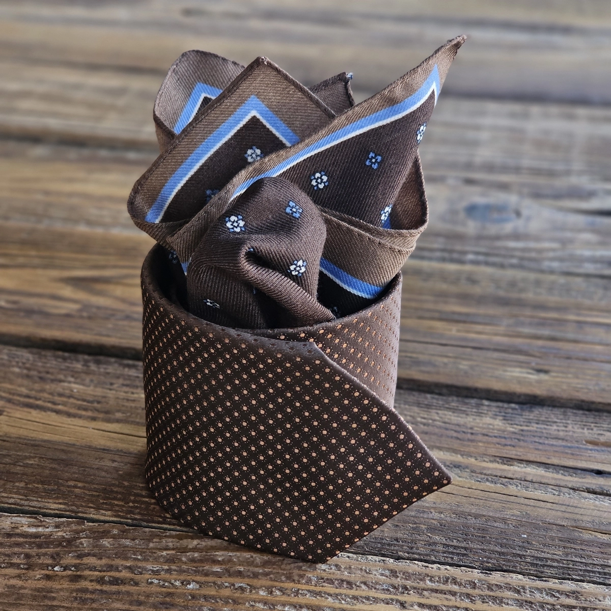 Komplet kravate i maramice predstavlja jedan od najelegantnijih detalja muškog odevanja, koji jasno govori o ukusu i osećaju za stil. Usklađenost ova dva elementa donosi celovit izgled, bilo da se radi o poslovnim, svečanim ili posebnim prilikama.